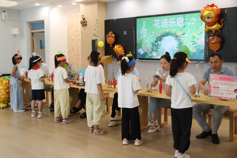 角“多萝茜”,依次挑战四大创意关卡。在“花语乐章”环节,孩子们结合科学课所学,生动讲解植物特征,并用自制乐器合奏出美妙乐章;“勇气森林”则通过投掷、跳跃等体育项目,融入数学图形认知,锻炼学生的体能和思维;“智慧麦田”设置了朗读背诵、阅读理解、故事创编等语文活动;最后的“温馨家园”模拟超市购物场景,让学生在实践中运用数学计算能力。